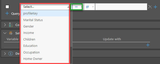 - Next, select the second operand for your Query Condition: