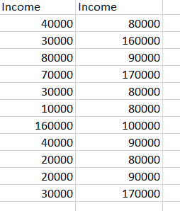 In this example, the table contains the income column on the left in the image below. We want to create a variable that will be used to load only rows where the income was 75000 and above (as in the column on the right).