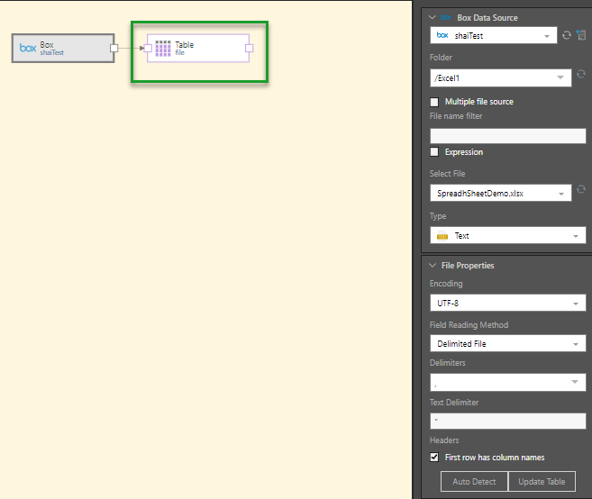 Box is a platform that enables file management, collaboration and automated workflows internally and externally. Files in Box can be used as a data source where the imported file is converted into a table.