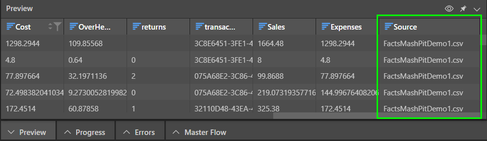 Enable this option (green highlight below) to add a column to the table listing the source file for each row.