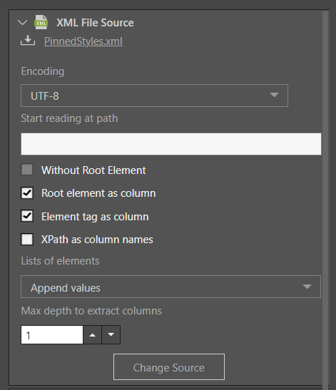 - Encoding: encoding is set to UTF-8 by default. If your XML file source has a different encoding, select it from the drop-down.