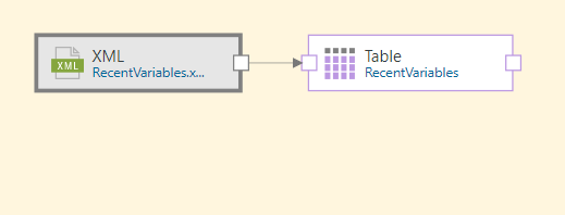 After setting the XML properties, the table is added to the data flow by clicking Add Table from the Tables window: