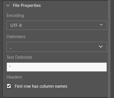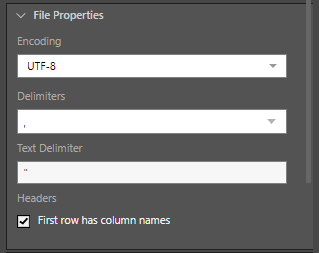 - Headers: if the file's first row is made up of column names, enable 'First row has column names'.