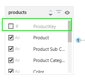 In the image below, all columns in the 'products' table are visible, except for the ProductKey table: