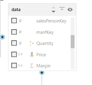 Pyramid also uses heuristics to detect and hide measure columns, and to assign them to a measure aggregation. This means that they won't be visible as columns in the data model; instead they will be organized into measure folders and will be visible as measures. If you un-hide a measure, it will be visible as both a column and a measure in the data model.