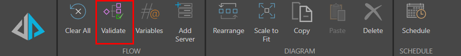 To check that the master flow is valid, click Validate from the ribbon (red highlight below):