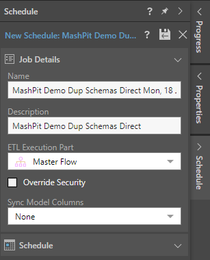 When creating a new schedule, you need to configure the Job Details and the Schedule.