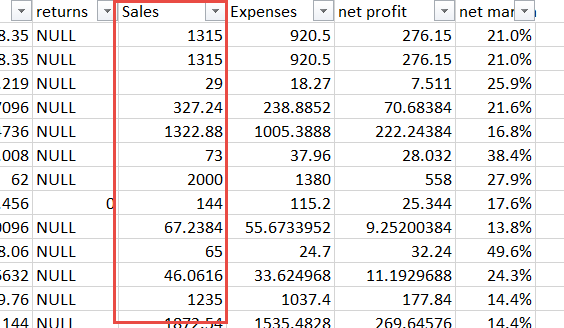 We then write a script that will return rows from the Data table only if the Sales value is higher than the variable: