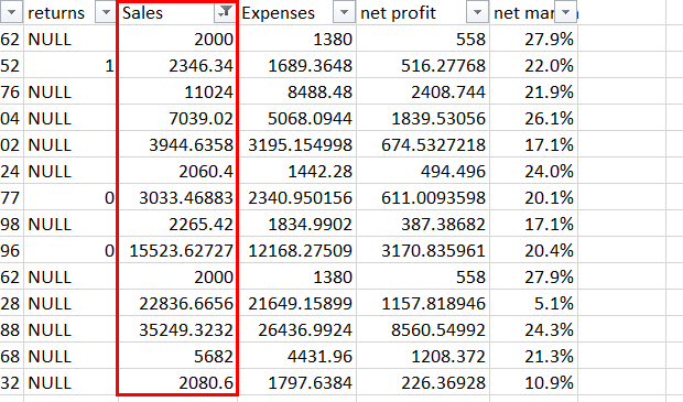 To do this, we create a variable with a value of 2000, names 'VarSales':