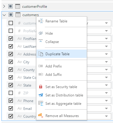Check a column to keep it in the data model, or hide a column by unchecking it. Hidden columns are not shown as attributes in the final model, but that can be used to configure calculated columns, measures, and user hierarchies.