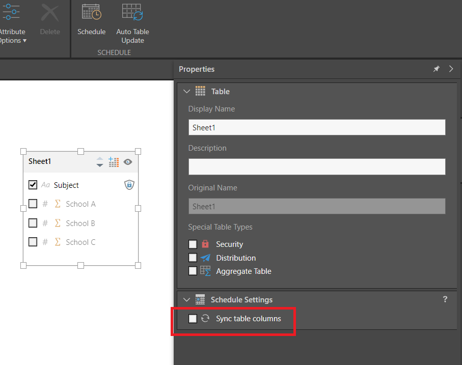 Users can select which tables to sync in the Table Properties panel. There is no need to select all of the tables.