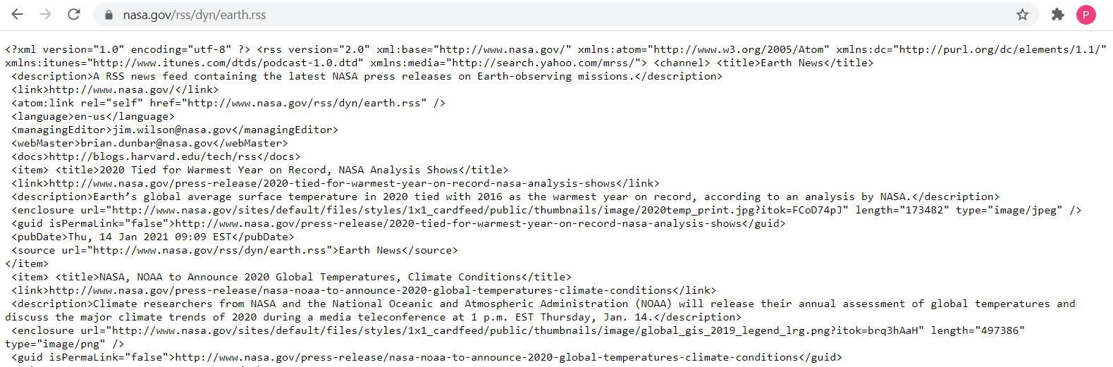 After the adding the RSS node to the data flow, the URL of the RSS is provided: