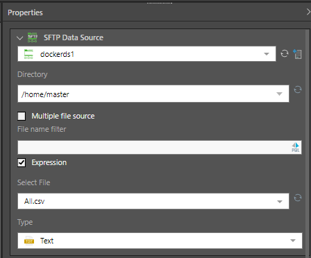 - Expression: enable to expose the PQL editor, where you can write a PQL expression to be injected into the file name filter field.