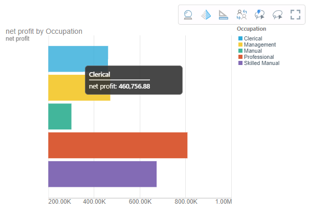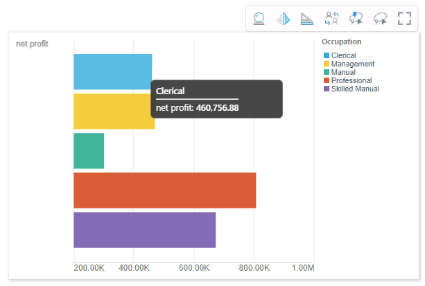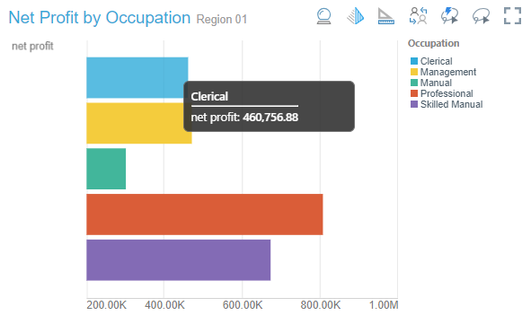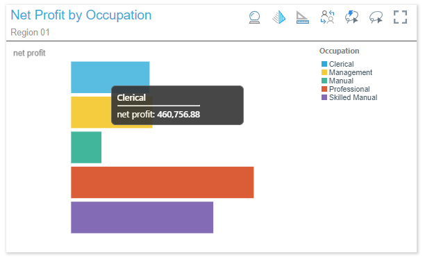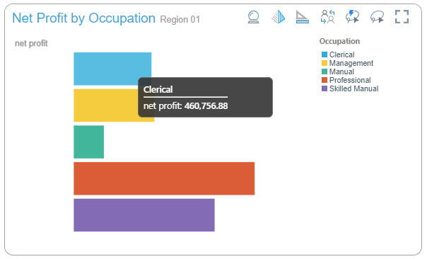 Panels are the containers used to "frame" your visuals in Present and Publish. Depending on the style chosen, your panel may include a title, breadcrumbs, a border, shadowing, and so on. When viewed at runtime in Present, each panel also contains Panel Tools that are shown when hovering over the visual, regardless of whether or not panels are shown or hidden.