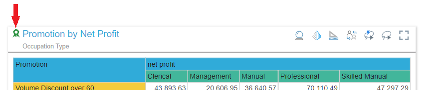 The Sanctioned Model certificate is displayed on visuals built from a data model that has been marked as "Sanctioned" by the Admin. Visuals built from a sanctioned data model display the sanctioned model watermark at the top-left (red arrow):
