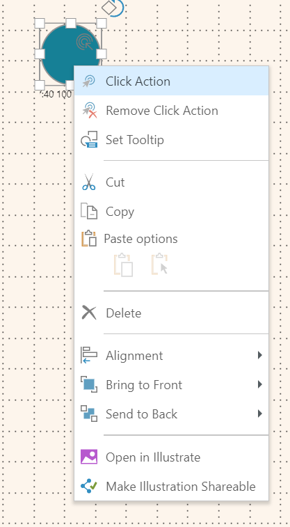 To delete the click action from the asset, right-click it and select Remove Click Action. This leaves the "button" (shape, image, or text field) on the slide.