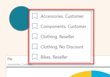 When the button is clicked at runtime, a list of saved slicer Bookmarks opens for the user to select bookmarks from. Bookmarks added by the user at runtime also appear in their list.