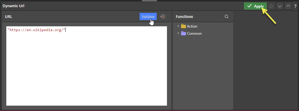 - Click Validate to test the URL.