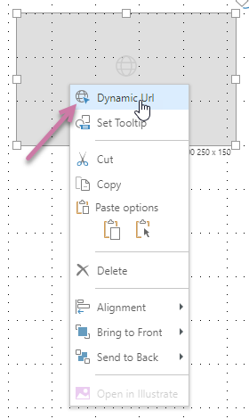 - Right-click the panel and select Dynamic Url from the context menu.