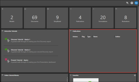 The Bulletin Board displays a summary of your unread publications and scheduled models. Click here to learn about the Bulletin Board.