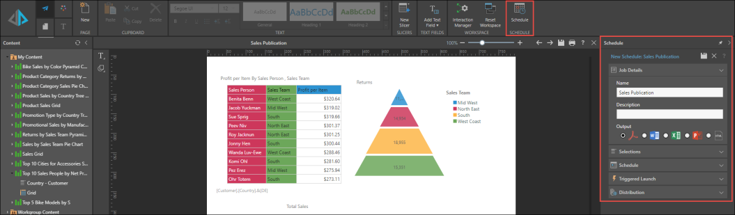Once you save your publication, the Schedule button will be enabled in the home ribbon. For details, refer to Schedule a Publication.