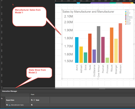 For instance, Model 1 may contain a hierarchy called State, while Model 2's hierarchy is called State Code. Say that a data discovery displaying Manufacturer Sales from Model 1 is added to the publication, along with a State slicer from Model 2. When the publication is executed, Pyramid will search for the given State member in the target visualization; but because Model 1 doesn't contain a hierarchy called State, the user will get an error.