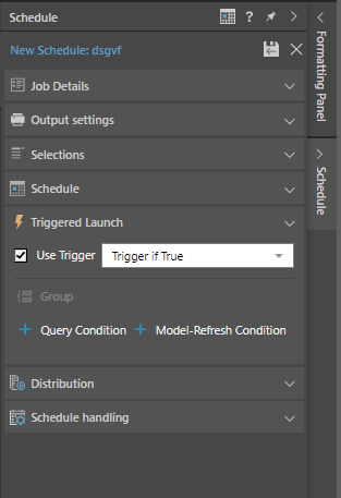 2. You can determine the launch of the scheduled item to be either when the conditions are met or not met, by selecting Trigger if True or Trigger if False.