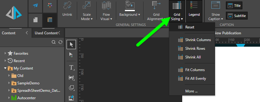 - Fit All Evenly: Expand or shrink columns, including row columns, to fit the grid container.