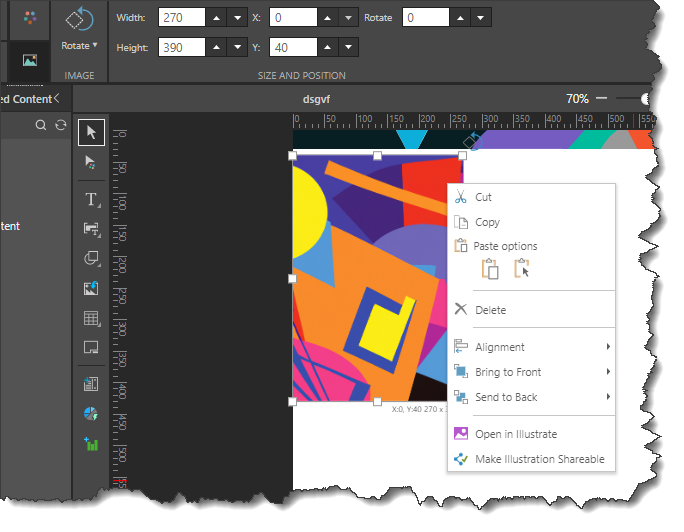 - Optionally, right-click the image and select Send to Back on the context menu to place it behind any other items on the page.