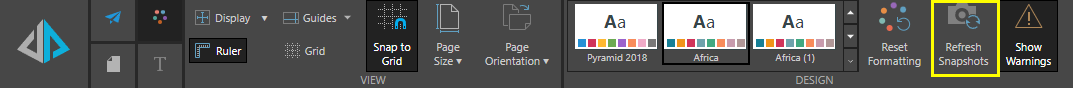This function is found in the Action Panel, and the Design Ribbons in Present and Publish. It tells the system to redraw the snapshot thumbnails of any selected content item using its latest design and / or layout. Snapshots can be refreshed for presentations and publications in order to reflect the latest changes in the given item.