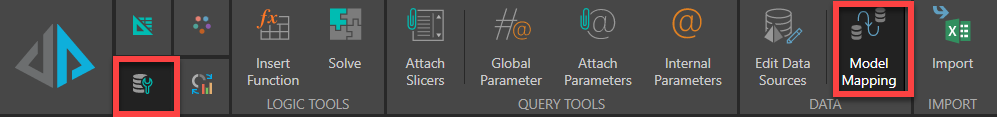 - Open the Model Mapping wizard from the Data area of the Advanced Settings ribbon.