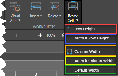 - From the Tabulate ribbon, click Resize Cells > Row Height (red box).