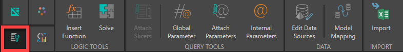 - Logic Tools Area: Enables Functions to be inserted in a Tabulation. Also provides access to the Solver.