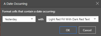 From the right drop-down menu, select the cell and text formatting to be used when the condition is met.