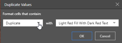 Note: This tests for UNIQUE or DUPLICATE values in the selected cells.
