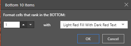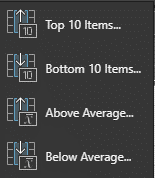 - To show highlight information based on top/bottom rules. For more information, see Highlighting based on Top/Bottom Rules.
