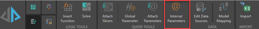 To manage parameters, click the Internal Parameters button from the Advanced Settings ribbon (red highlight below):