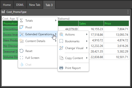 - Chat: Open the Chatbot and manipulate the selected visual.