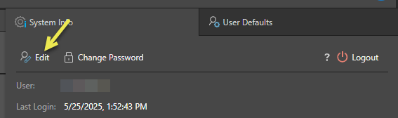 To open the User Info panel, click the User Details & Settings button (indicated by the purple arrow below) from the Home menu.
