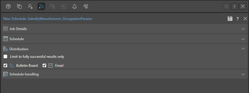 - Email Distribution is Off: Choose this option to disable email distribution for the current schedule.