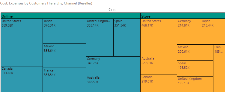 - Group by Color: group the tree map by color; the hierarchy in the Color drop zone will then drive the headers, rather than the hierarchy in the Details zone.
