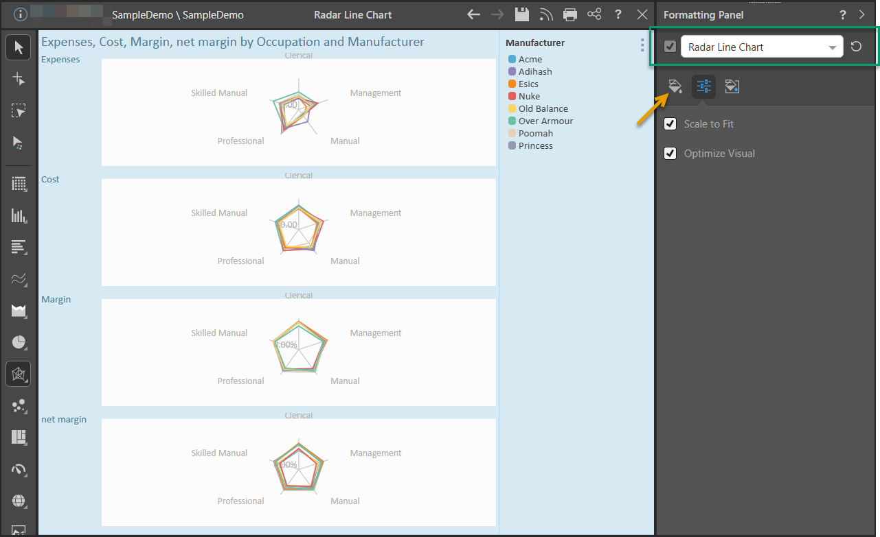 • Click here for a full list of formatting functions available for radar charts.