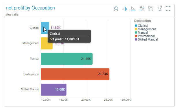 Changing the Panel Settings changes what the panel or "frame" (rather than the visual it contains) looks like at runtime. The following example shows a Bar Chart visual in a panel with the "Classic" style applied using the Formatting panel's Style drop-down. The style and other formatting options affect the shape, border, and shadow associated with the panel, the Panel Tools shown at runtime (Present only), as well as the position and styling of the title and subtitle.