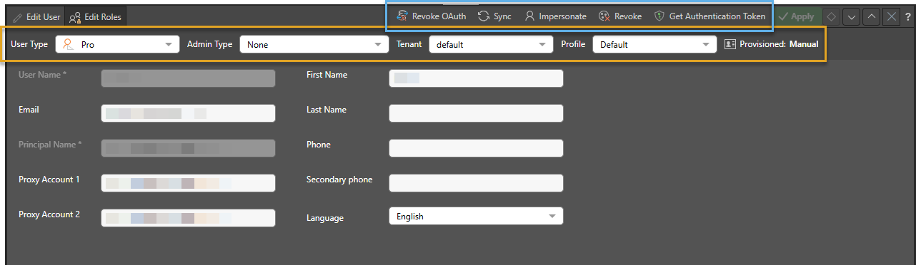 Note: You cannot edit a user's main details in this page if that user is Fully provisioned. See below.