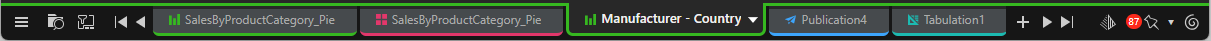 When you open multiple content items in one action, the last one to be opened is visible in the main canvas. You can navigate between open items using the tabs at the bottom of the page: