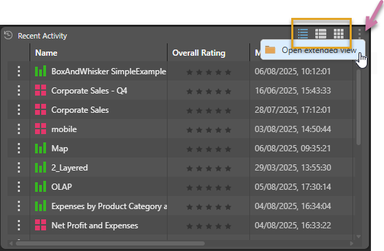 - Open Extended View: (Purple arrow.) Open the given content view in the Content Manager.