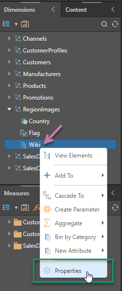 Users can adjust the properties of a hierarchy through the Properties panel found by right-clicking on a hierarchy in the dimension / hierarchy tree in Discover. Custom properties "overlay" the original settings for each hierarchy as they were designed in the original source data model.