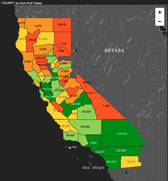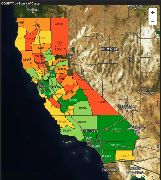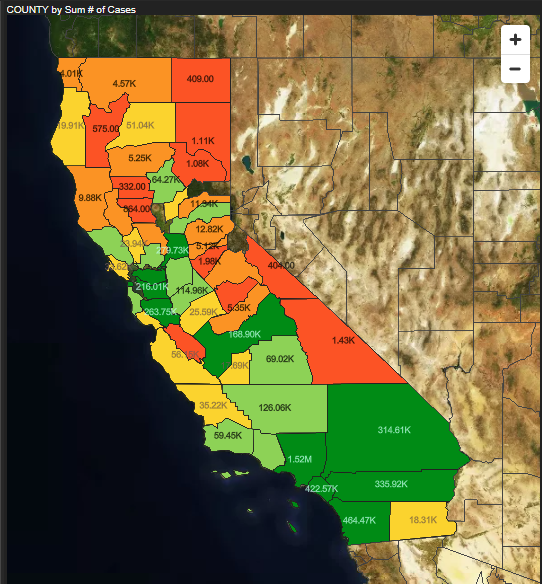 Each map style (bubble, shape, heat, and layered) supports several different map types which affect the look and feel of the map. The default map type is the flat map; other map types can be selected to show topology, streets, satellite view, and more.