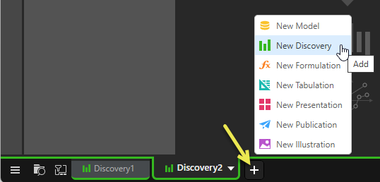 The New Report functions let you open the current data model in another tab (creating a new discovery), or duplicate the current report in another tab.