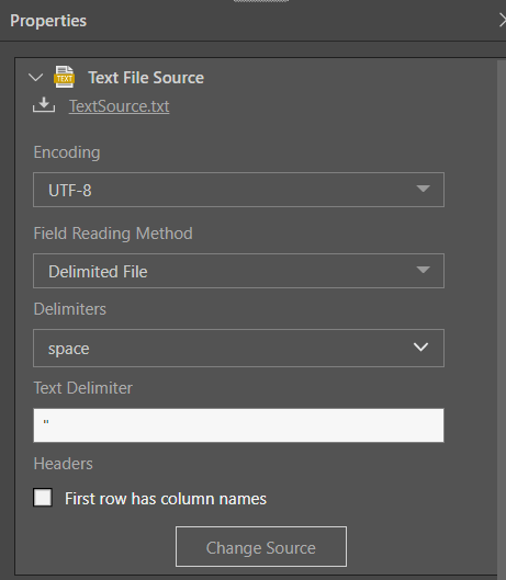 Once you've uploaded or connected to the file, you'll need to configure the properties to determine the structure of the table.